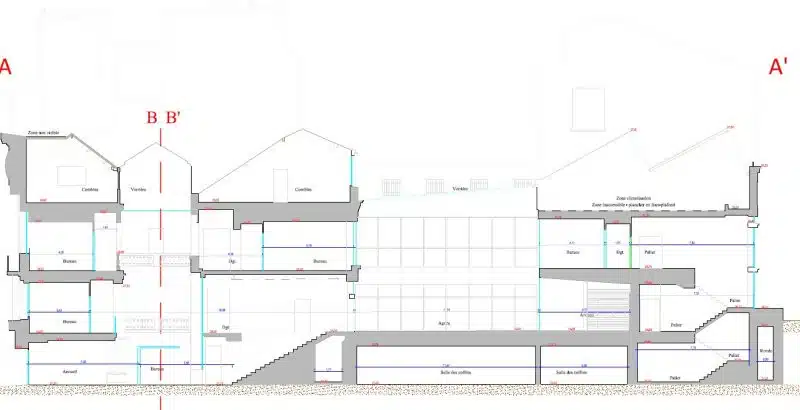 Le nuage de point 3D nous permet de dessiner sur plan les intérieurs, du rez-de-chaussée aux combles, les façades, les héberges, et en plus de dessiner des coupes avec projection, pour plus de réalisme. Cela permet de mieux se rendre compte de l’état architectural de l’édifice et de mieux interpréter les futurs changements.